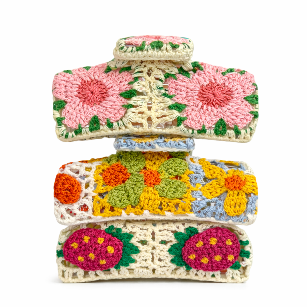 Floral Crochet Hair Clip - Pink Flower Design