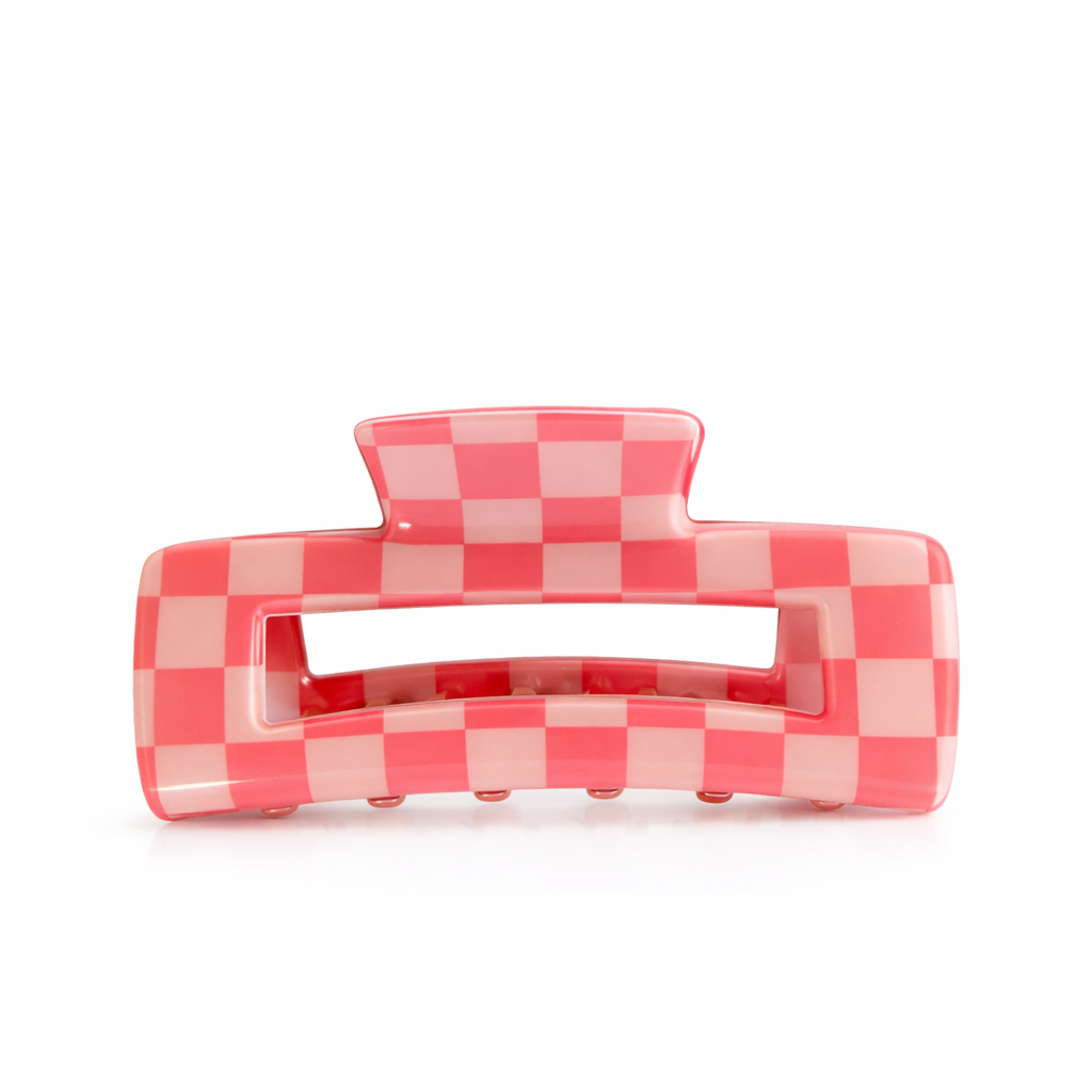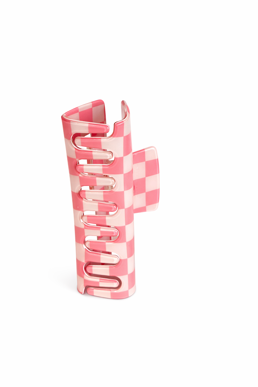 The Pink Gingham Claw Clip brings a fresh, modern pop of color inspired by sunny picnics and vintage charm. Crafted from smooth, glossy acrylic with a strong spring hinge.